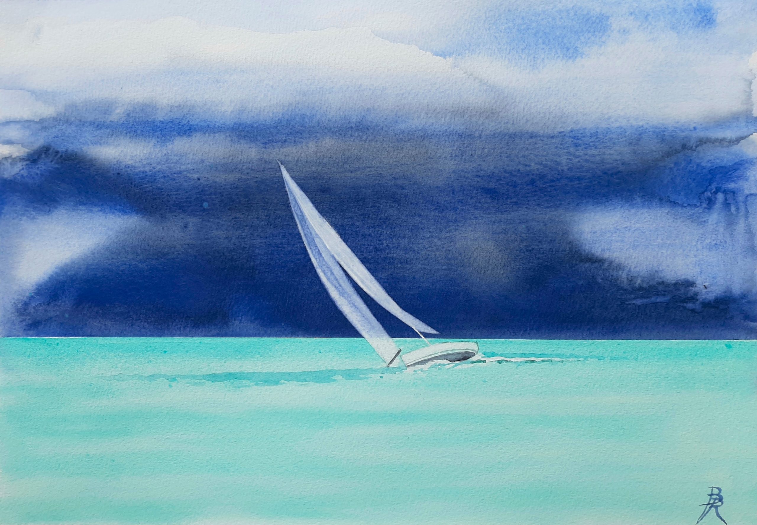 Aquarelle d’un matin bleu – Vendue